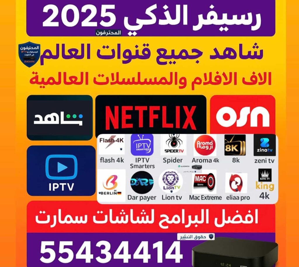 رسيفر واي فاي الكويت | 55434414 | رسيفر نت 4K بدون دش وتجديد اشتراك المحترفون تجديد فوري رسيفر الجني فني